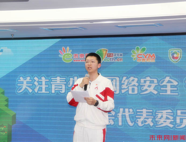 “作为当代中学生,我们向同学以及叔叔阿姨们发出以下倡议:我们将从自身做起,从净化网络语言开始,让健康阳光的语言,活跃于网络世界,让低俗污秽的语言,没有市场空间,最终拥抱健康网络环境的‘绿水青山’。争做共享网络文明的志愿者,争做共建网络安全的捍卫者,争做规范网络道德的宣传者。让我们行动起来,呼吁全社会关注青少年网络安全,大力弘扬社会主义核心价值观,为中国梦凝聚青春力量!”这是来自人大附中的赵崇霖和王雨柔同学在3月8日“关注青少年网络安全争做中国好网民”两会代表面对面活动中发出的倡议。