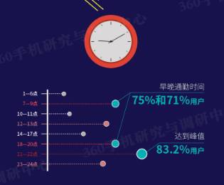 《报告》通过调研还发现,人们日常使用手机时间是有一定的时间规律的。在早上和晚上出现两个小高峰,还有一个爆表时段。