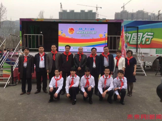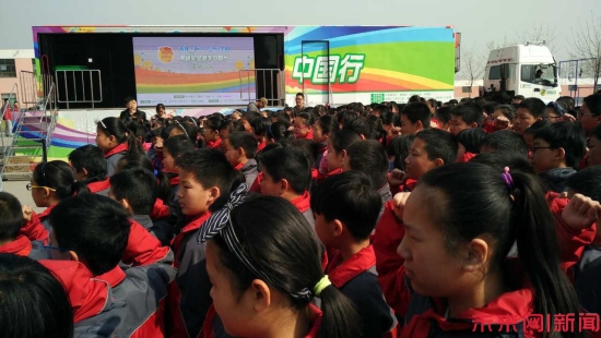 图为安全宣传车抵达济南,高新区第二实验学校举办启动仪式。