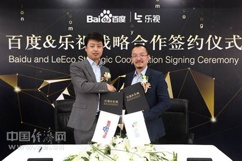 乐视生态营销中心总裁张旻翚与百度联盟发展部总经理邓明生签署协议
