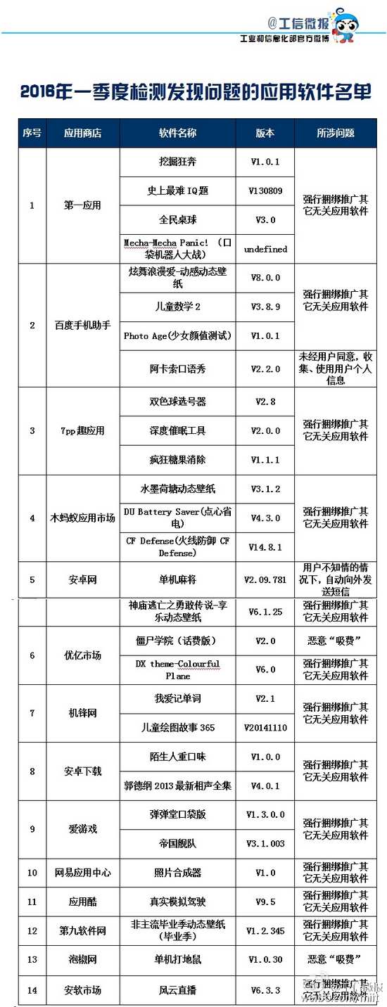 附:2016年一季度检测发现问题的应用软件名单
