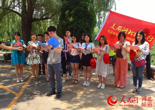 图为“美丽河北红色行”网络媒体采访团宣读学习李保国倡议书。孙逸桦摄