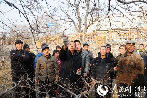 图为2016年1月27日,李保国为果农讲解果树冬季修剪技术。张梦琪摄
