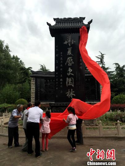 两位年过九旬的老党员和小学生为“华夏历史园林”揭牌俱凝搏摄