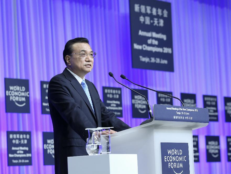 6月27日,国务院总理李克强在天津梅江会展中心出席2016年夏季达沃斯论坛开幕式并发表特别致辞。新华社记者庞兴雷摄