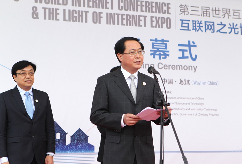 国家互联网信息办公室副主任任贤良主持互联网之光博览会开幕式。(中国网信网焦鹏摄)