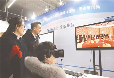 12月16日,在第五届省特色文化产品博览交易会上,石家庄铁道大学工作人员向市民展示VR头盔虚拟体验系统。记者杜宇鹏栗晓烁摄