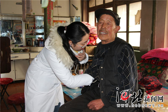 河北医科大学第一医院医务人员到村民家中提供义务诊疗,受到村民欢迎。