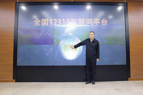 3月14日,国家工商总局举行全国12315互联网平台(以下简称“平台”)上线启动仪式。仪式上,工商总局党组书记、局长张茅轻按大屏幕画面中心的“开通”二字启动平台,总局党组成员、副局长唐军致辞。