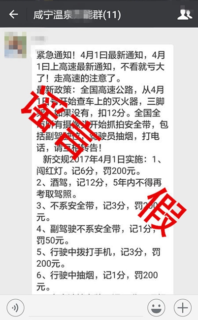 3月中旬,多地微信朋友圈传播一条“新交通法4月1日实施”的信息,信息称“紧急通知!4月1日最新通知,4月1日上高速最新通知,不看就亏大了!”