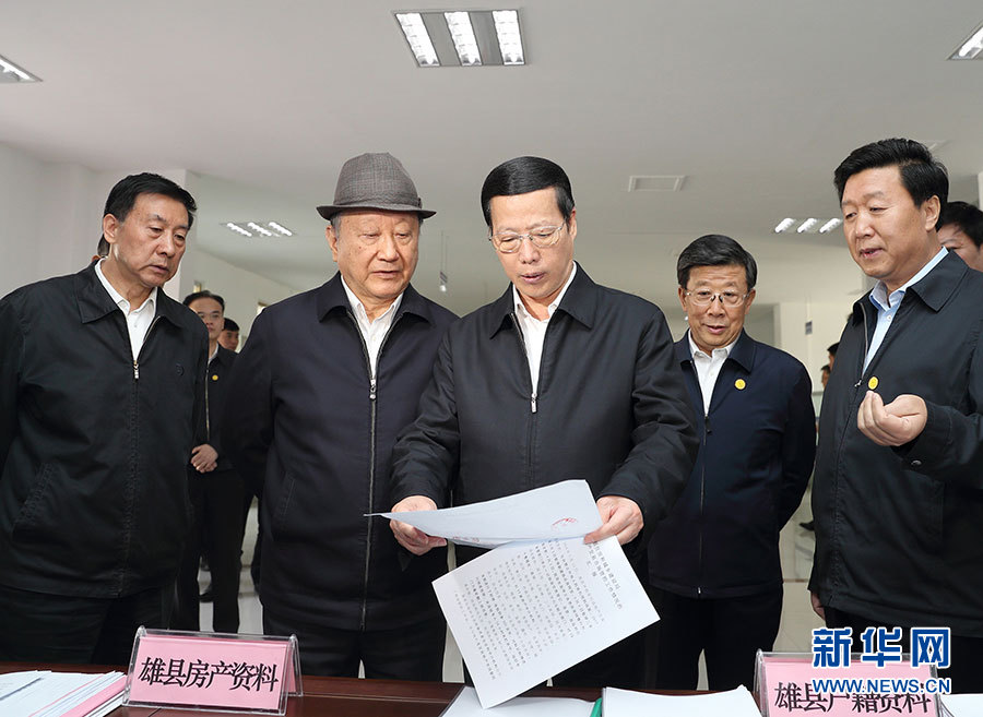 中共中央政治局常委、国务院副总理张高丽6日在河北实地察看和调研雄安新区规划建设有关工作。张高丽前往容城县了解雄安新区铁路、公路、水路等交通情况;到雄县公共资源交易中心和部分住宅小区售楼部,调研土地、房地产、户籍管控工作;到宋辽古战道,调研文化遗产、文物等保护工作;然后到白洋淀察看生态环境整治工作。6日下午,张高丽在安新县主持召开雄安新区规划建设工作会议,听取河北省有关工作情况汇报,研究部署当前和今后一个时期重点工作。