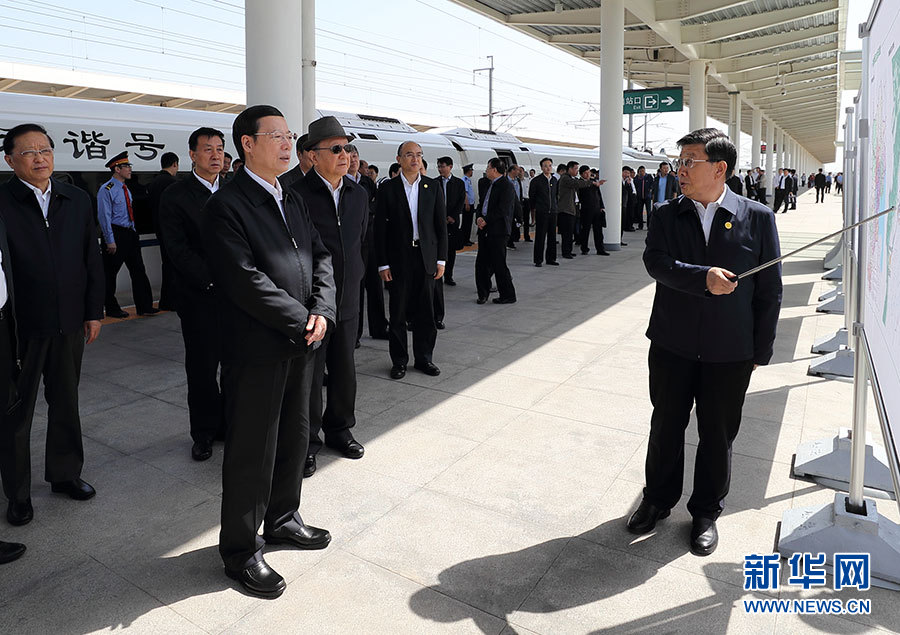 5月6日,中共中央政治局常委、国务院副总理张高丽在河北实地察看和调研雄安新区规划建设有关工作。这是张高丽在容城县白洋淀火车站了解雄安新区铁路、公路、水路等交通情况。新华社记者王晔摄