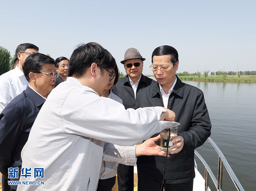 5月6日,中共中央政治局常委、国务院副总理张高丽在河北实地察看和调研雄安新区规划建设有关工作。这是张高丽在白洋淀察看生态环境整治工作。新华社记者王晔摄