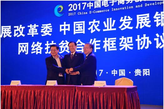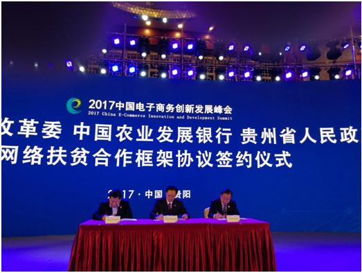 为贯彻落实党中央、国务院有关全面打赢脱贫攻坚战的战略部署,加快实施网络扶贫行动,推进精准扶贫、精准脱贫。2017年5月25日,国家发展改革委、中国农业发展银行、贵州省人民政府全面支持网络扶贫合作签约仪式在贵阳国际生态会议中心举行,国家发展改革委副主任林念修,中国农业发展银行副行长鲍建安,贵州省委常委、省政府常务副省长秦如培出席签约仪式并共同签署了《全面支持网络扶贫合作框架协议》。