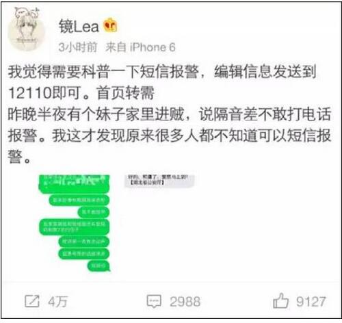 7月15日,微博网友@镜Lea通过一位朋友的经历突然发现,原来很多人并不知道可以用短信报警。