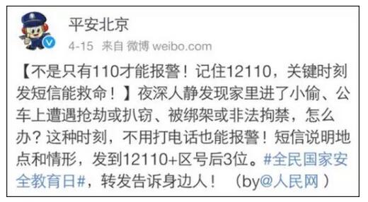 其实,早在2008年,公安部就确定将12110作为全国警方统一的短信报警号码,2012年全国推广。