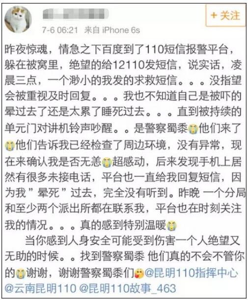 危急时刻收到警察蜀黍的短信,应该会很暖吧。