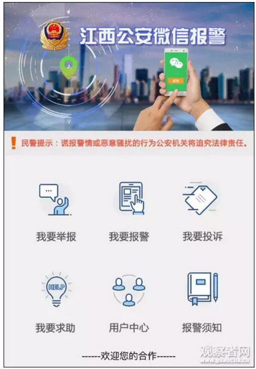 据观察者网查询,江西等多地都已上线微信报警服务。
