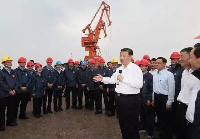 2015年5月25日至27日,习近平在浙江调研。这是5月25日,习近平在长宏国际船舶修造有限公司同工人们亲切交谈兰红光摄