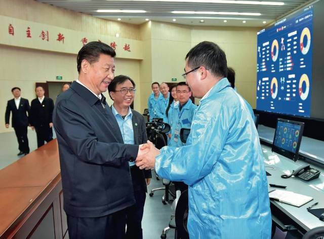 2016年4月26日上午,习近平在中科大先进技术研究院量子通信京沪干线运管中心同科研人员交谈李涛摄