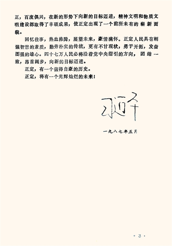 习近平任正定县委书记期间,提议并组织编写《正定古今》。1987年5月,他任厦门副市长期间,亲自为《正定古今》作序。(资料图片)