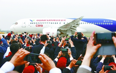 中国首款国际主流水准的干线客机C919首飞成功。新华社发