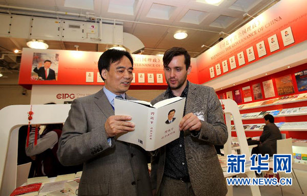 2015年4月14日,第44届伦敦书展正式开幕。首次亮相伦敦书展的《习近平谈治国理政》多文种版图书受到各界的极大关注。(图片来源:新华社)