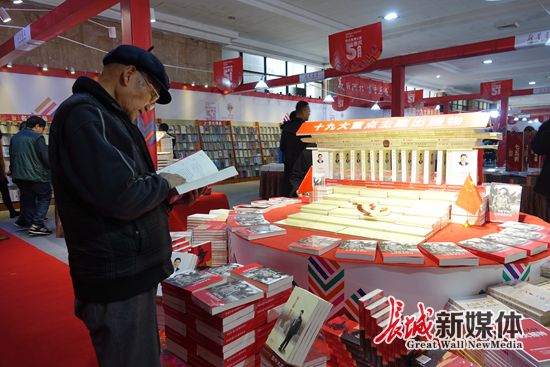 一位姓张的大爷在3号厅十九大重点主题出版物展区拿着《习近平的七年知青岁月》站立着看了近十分钟,深深地被书的内容所吸引。“这本书写得真是太好了,习近平总书记非常了解民情,真正为咱们老百姓干实事。”张大爷深有感触地说。