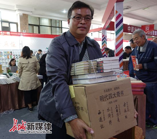 读者说的最多的一句话就是“真是太便宜了,价位真合适”。10月28日,杜先生早早地等在惠民书市门口,经过一上午的挑选,他选购了一纸箱子的书:“这里的书价比淘宝上的还便宜,我买的《明代四大奇书》平时一套下来需要一千多元,今天我才花了四百多元就买了,关键是都是正版,我每年都要来这里淘一批书。”