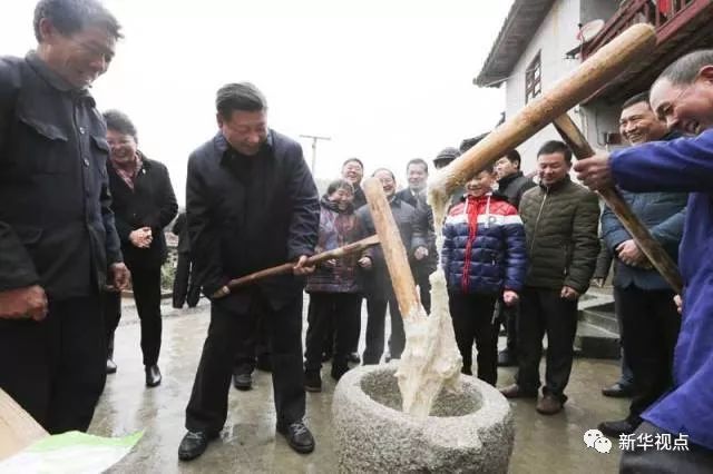 2016年2月,习近平总书记在井冈山市茅坪乡神山村同村民一起打糍粑。他指出,扶贫、脱贫的措施和工作一定要精准,要因户施策、因人施策,扶到点上、扶到根上。新华社记者兰红光摄