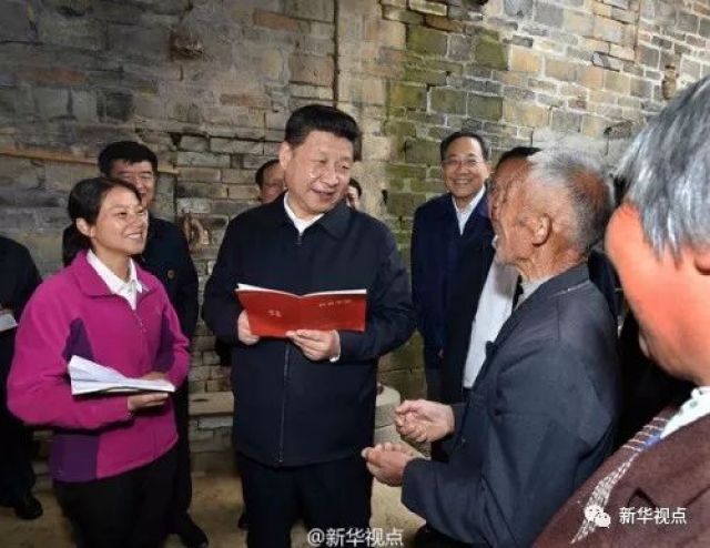 2016年4月,习近平总书记来到安徽省六安市金寨县走访村民,同当地干部群众共商脱贫攻坚大计。新华社记者李涛摄