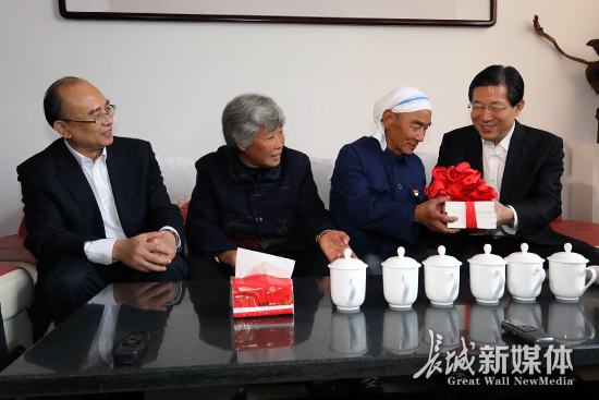 王东峰带领省委常委赴西柏坡村宣讲党的十九大精神。图为在老党员闫青海家中,王东峰详细询问老人的身体和生活状况,希望他充分发挥党员的模范带头作用。记者贺宏伟摄