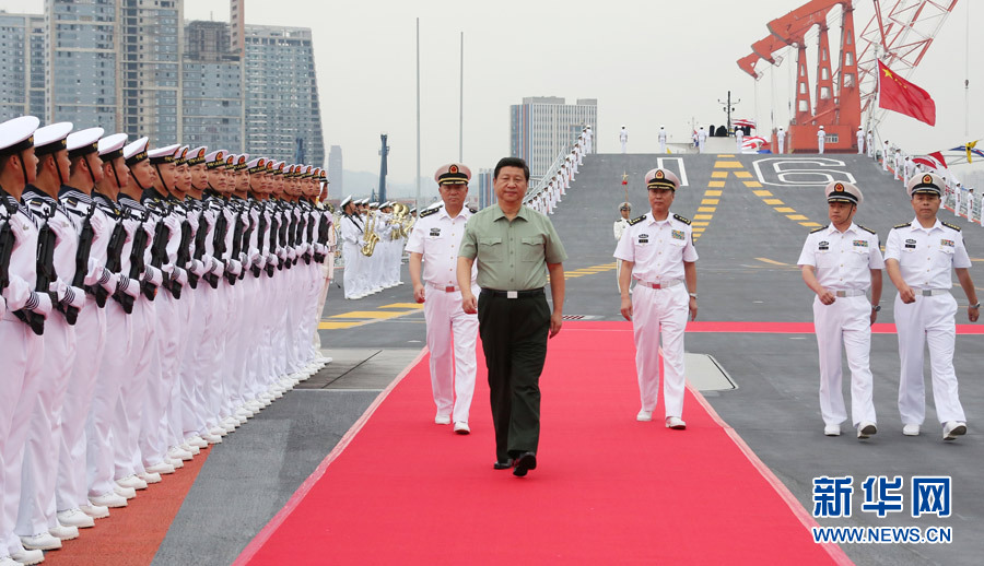 2013年8月28日下午,习近平检阅辽宁舰水兵仪仗队。新华社记者李刚摄