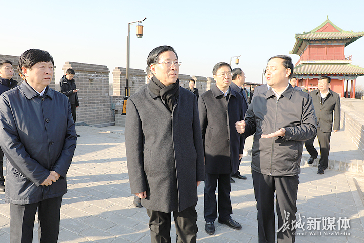 11月26日上午,河北省委书记王东峰到正定县调研。这是王东峰考察正定南城墙保护工程,调研指导古城保护工作。记者贺宏伟摄