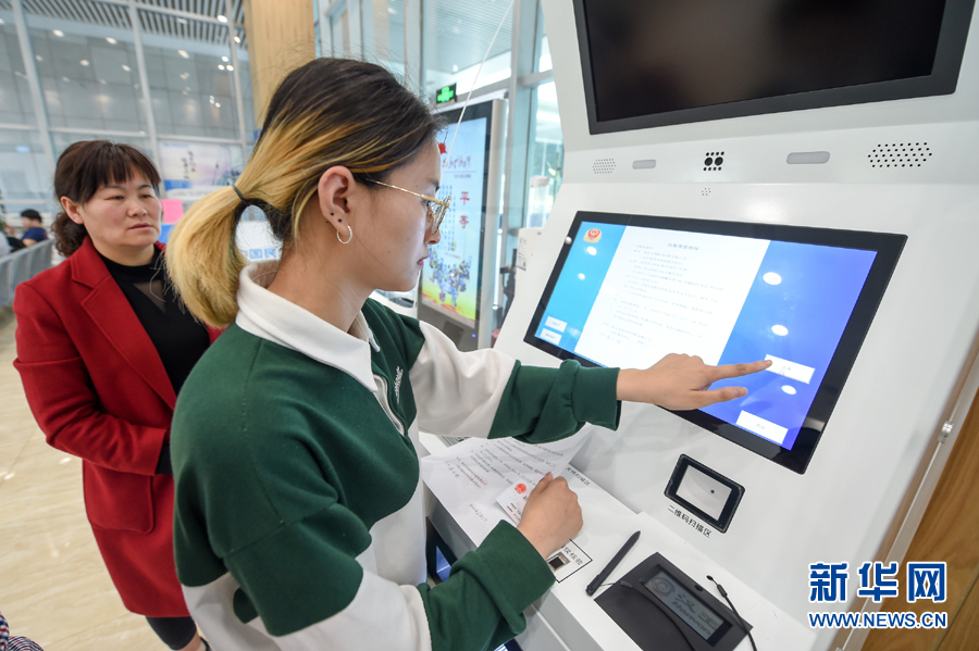 在南京市栖霞区商事登记服务大厅,市民用自动终端机办理业务(3月29日摄)。新华社记者李博摄