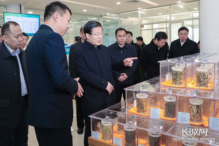 11月30日,省委书记、省人大常委会主任王东峰到保定市安国市和高新区调研检查,并召开座谈会。这是王东峰在保定市安国数字中药都,认真听取工作汇报,详细了解中医药产品加工、销售、质量检测等方面情况。长城新媒体记者庞晓玮摄
