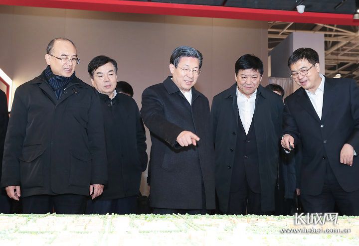1月3日,全省雄安新区建设发展工作会议在雄安新区召开。会后,王东峰、许勤等到雄安市民服务中心,考察了政务服务中心和规划展示中心,参观了雄安新区规划展,观看了专题片和启动区城市设计模型,并亲切看望入驻企业负责人代表。这是王东峰、许勤观看启动区城市设计模型。长城新媒体记者庞晓玮摄