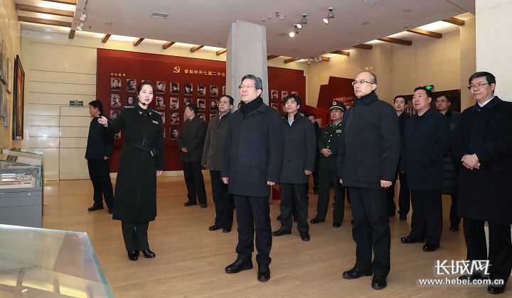 1月5日,省委常委班子在西柏坡九月会议旧址召开2018年度民主生活会。会前,省委常委班子在西柏坡向五大书记塑像敬献花篮,并集体参观了西柏坡纪念馆。长城新媒体记者庞晓玮摄
