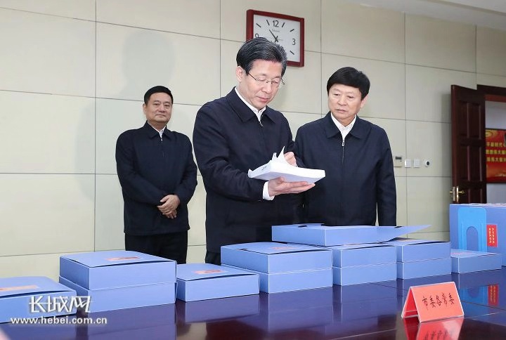 会前,王东峰详细查看了石家庄市2018年度落实全面从严治党主体责任、监督责任和党风廉政建设责任制的有关材料。(记者四建磊)