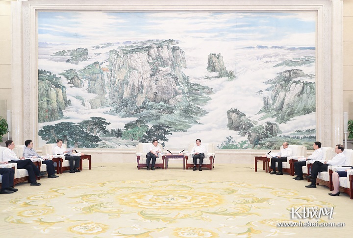7月30日上午,省委书记、省人大常委会主任王东峰在石家庄与中国民用航空局局长冯正霖举行工作座谈。省委副书记、省长许勤参加座谈。长城新媒体记者庞晓玮摄