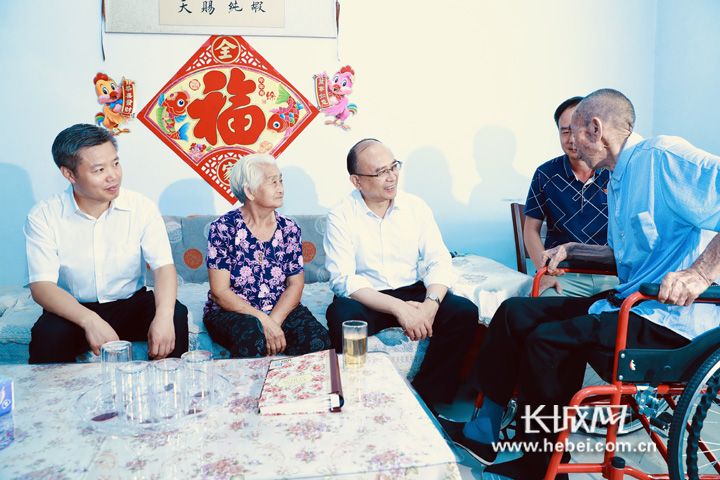 在“八一”建军节来临之际,按照省委统一部署,省长许勤在邢台市慰问退役军人和优抚对象,代表省委、省政府和省委书记王东峰,向他们及家人送上节日祝福和诚挚问候。这是许勤看望“执勤能手”王义省。长城新媒体记者耿佳摄