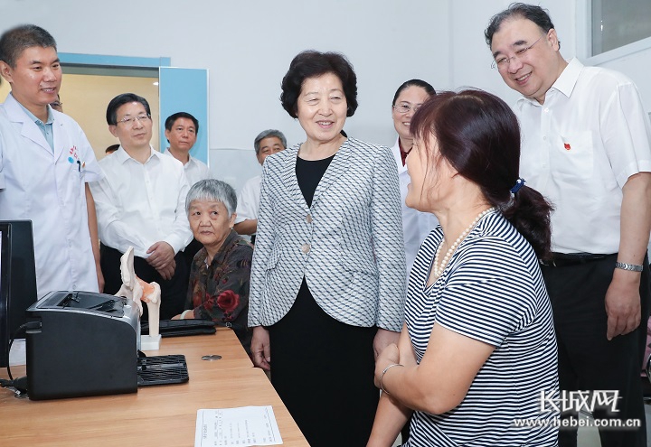 中共中央政治局委员、国务院副总理孙春兰3日在河北雄安新区调研。这是孙春兰考察安新县中医院。长城新媒体记者庞晓玮摄