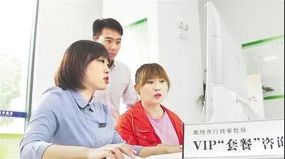 近日,廊坊市行政审批局的工作人员(左)为办事群众提供代办服务。