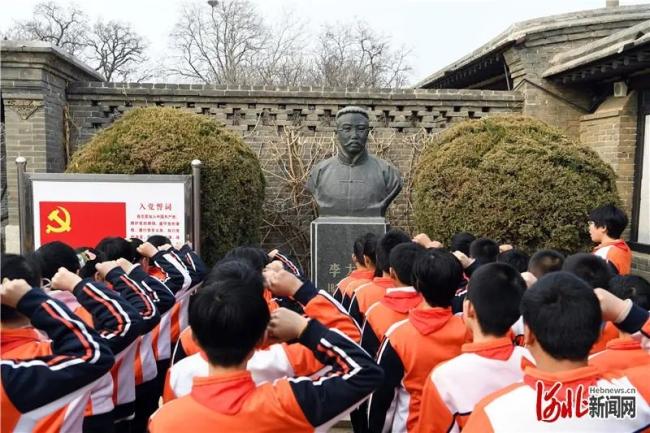 3月12日,乐亭县胡家坨镇大黑坨小学学生在李大钊故居举行“缅怀革命先烈,传承红色基因”主题活动。