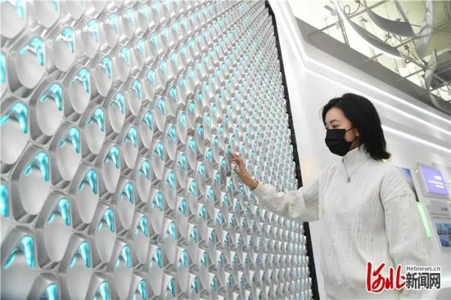 9月6日,游客在数博会怀来分会场数字会展中心体验大数据玛瑙互动装置。