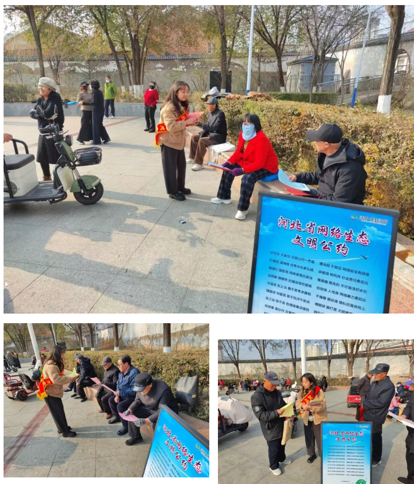 活动现场,宣传展板直观呈现《公约》核心内容,从“遵法规、保安全”“识谣言、不传谣”到“拒暴力、护权益”“扬正气、清空间”等维度,将条款转化为朗朗上口的顺口溜,吸引群众驻足拍摄、分享践行。工作人员在资料发放区递出 200 余份《公约》手册、安全折页及倡议书,结合案例讲解网络诈骗防范、信息保护技巧与违法风险,让群众快速掌握安全用网要点。