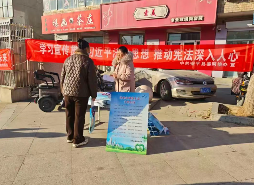 为加强网络生态文明建设,提升广大居民的网络文明素养,安平县委网信办于12月4日在中心路为民园开展了《河北省网络生态文明公约》主题宣传活动。活动旨在普及网络文明知识,引导居民自觉遵守网络行为规范,共同营造清朗的网络空间。