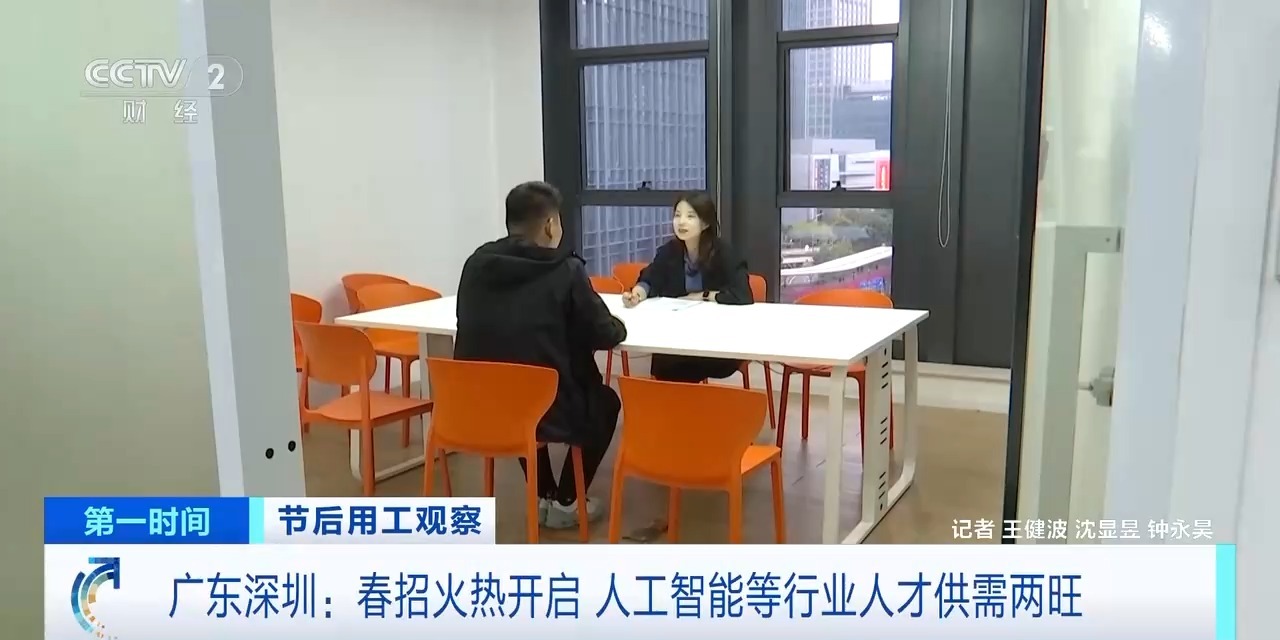 广东深圳某人工智能企业员工 徐宇强:当时大概投递了四五十份简历,才会得到一个面试机会,而现在,投递四五次简历就会得到一个面试的机会,包括薪资待遇也会相对有所提高。