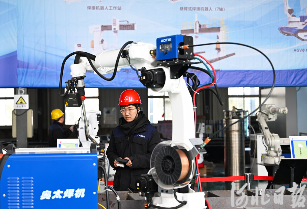 位于邢台经济开发区的国家级专精特新“小巨人”企业河北创力机电科技有限公司,工人在调试免试教焊接机器人。河北日报资料片